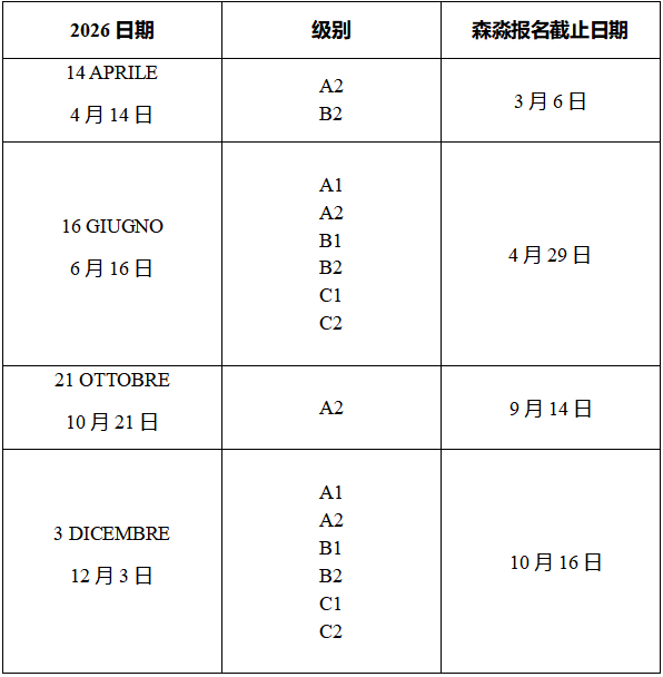 附2025-2026年意大利语考试时间表: