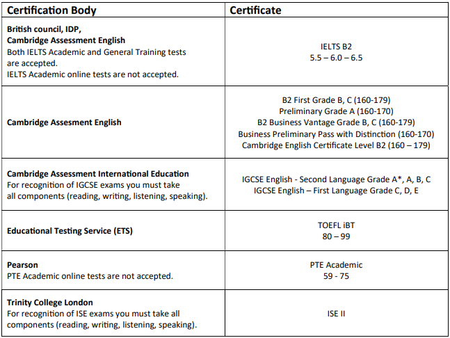 · 已获得或正在攻读全英文授课的大学学位。需提交大学出具的官方证明信,明确写明教学语言为英语。
