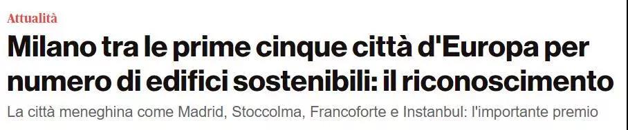 据欧洲媒体报道,在欧洲LEED标准的可持续建筑排名上,米兰与马德里、斯德哥尔摩、法兰克福和伊斯坦布尔名列欧洲前五。