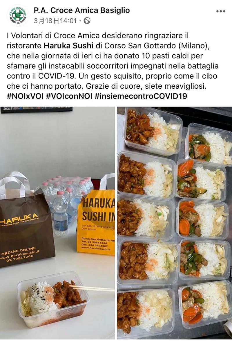 胡先生是从邻居那里得知救护队吃饭难的消息。在意大利生活了16年,胡先生在米兰南部经营着一家有十年餐龄的日料餐厅Haruka Sushi,餐厅的客户大部分是意大利人,在疫情下,他成为华人先锋的代表,出于志愿、也出于想“掰正”意大利人脑海里“错误”想法责任感。