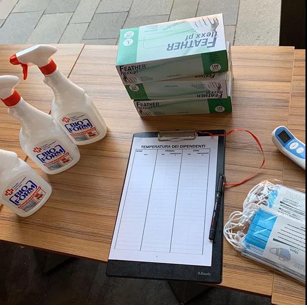 从4月14日到5月3日,是意大利重启工作准备阶段。Haruka Sushi已经在外卖市场作出了适应性的调整。有自己的派送团队,面对不可松懈的疫情,所有人也都打起了十二分精神。和国内一样,外卖戴口罩、手套,每天员工上班须测体温填表,消毒工作每天都在进行。对自己负责,才能让顾客和餐厅之间形成稳定的粘性。