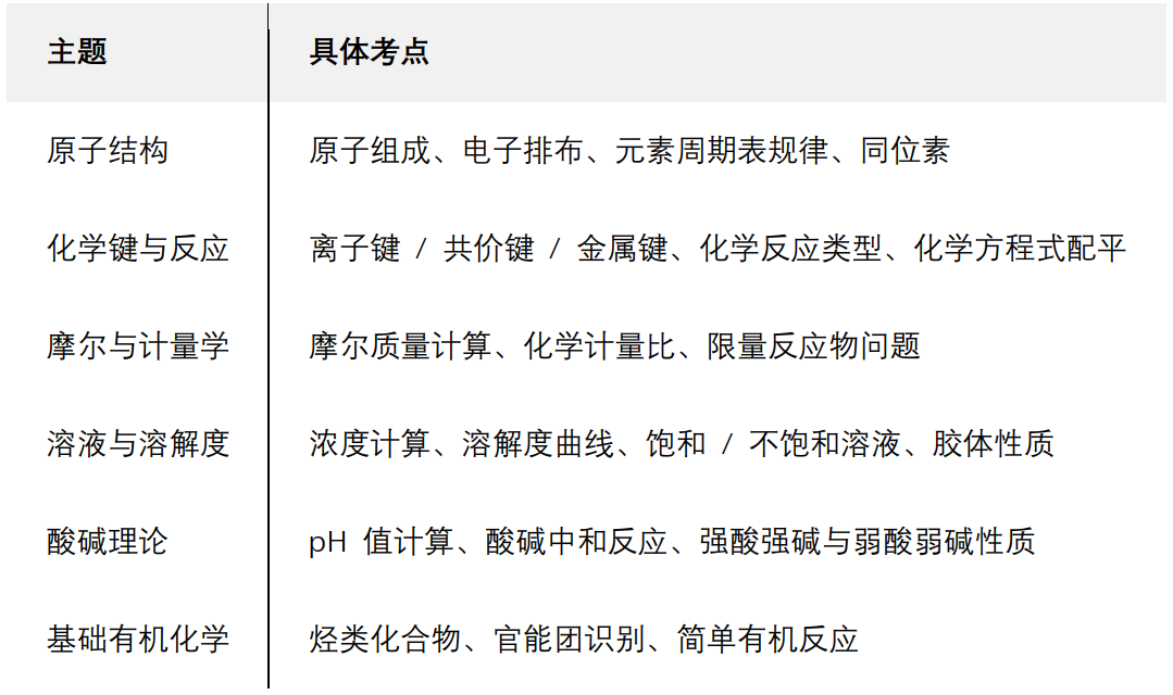 · 化学(20分钟):10题,考察化学原理与应用能力。