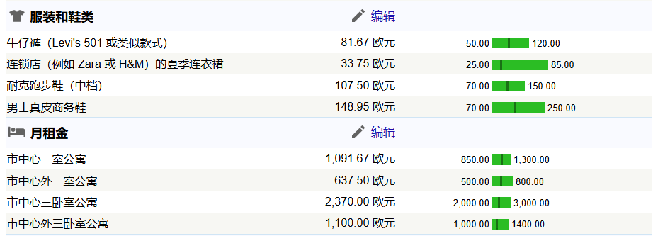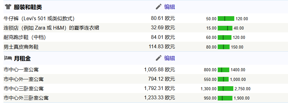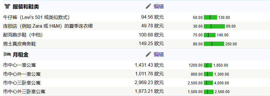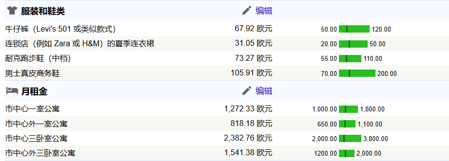 以下单独展示几个热门大城市的花销(已翻译成中文),城市包含:罗马、米兰、都灵、佛罗伦萨、博洛尼亚、威尼斯。花销包含:餐厅、超市、公共交通、水电网费、服装、租房。