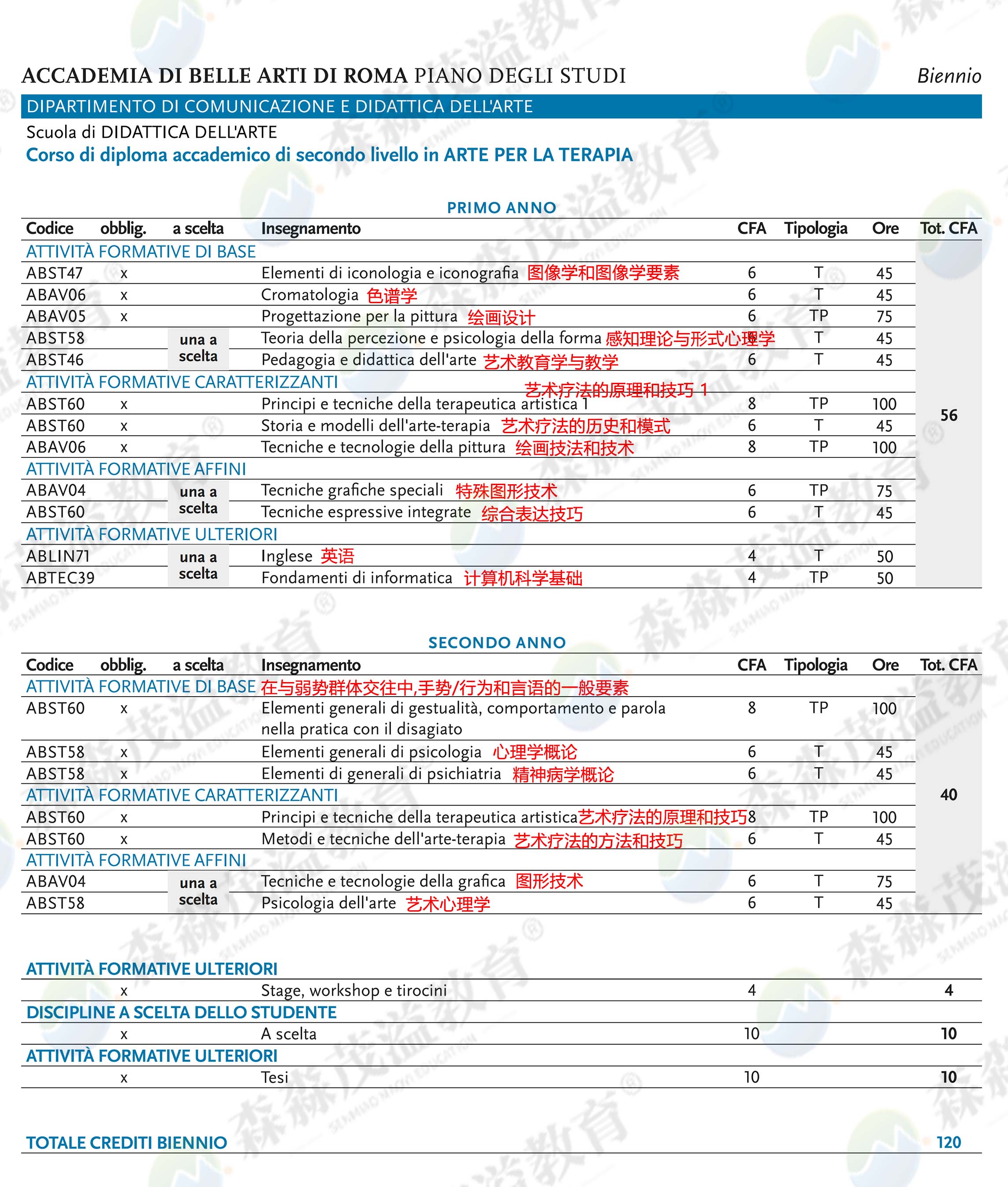 罗马美院硕士艺术疗愈专业课程列表 ↓