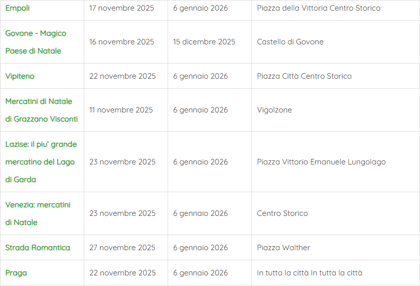今天为大家列出圣诞集市列表,别忘了去亲身感受一下意大利的圣诞氛围吧!