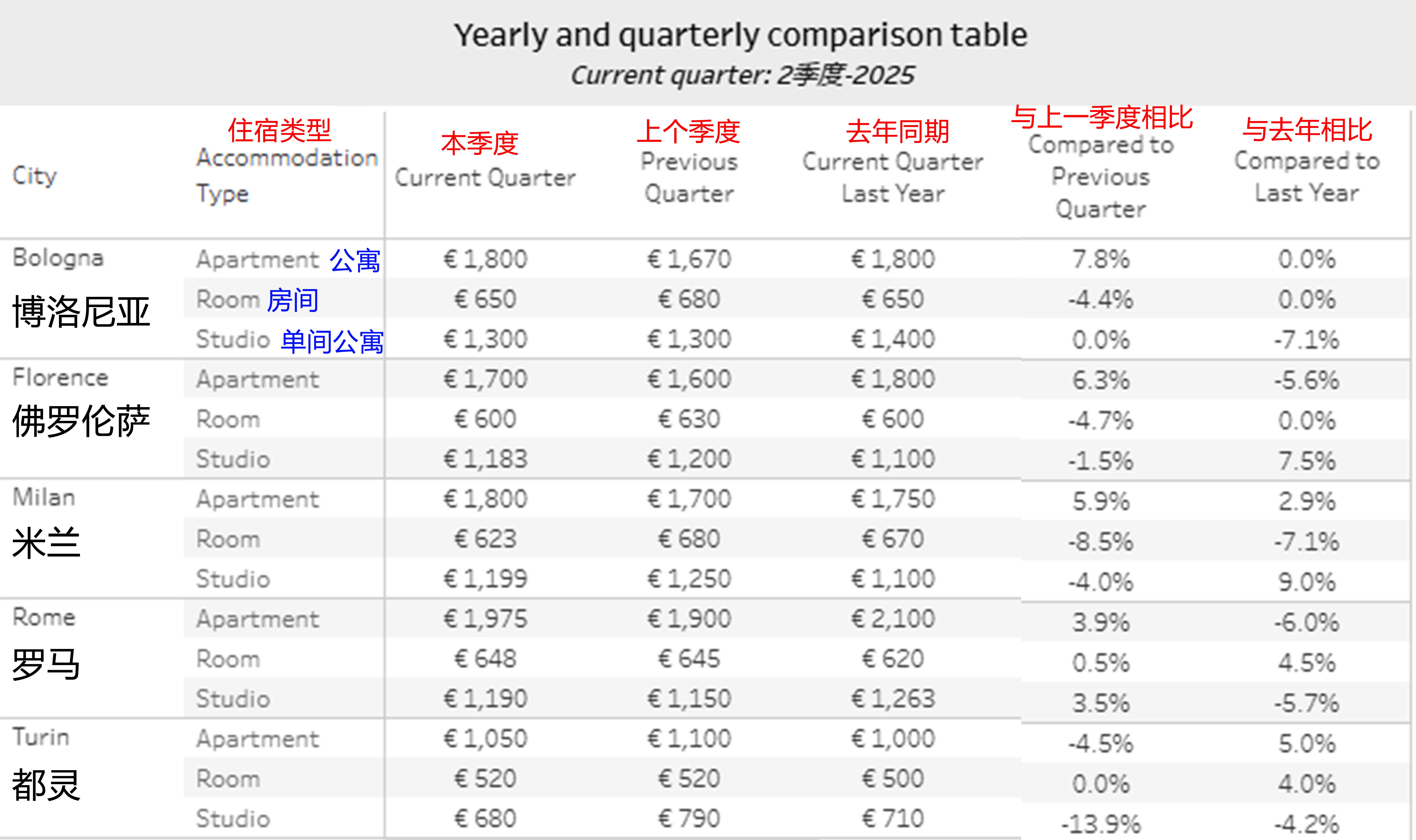 意大利的租赁市场与欧洲整体趋势相符,总体而言,除罗马等少数例外情况外意大利大多数主要城市的房间租赁市场都在放缓。