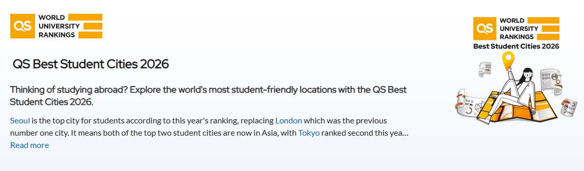 2026 年 QS 评出最佳学生城市,全球共有150个城市入围,意大利共 3 个城市入选,看看这些城市都有哪些学校可以选择。 01 评选指标...[更多]