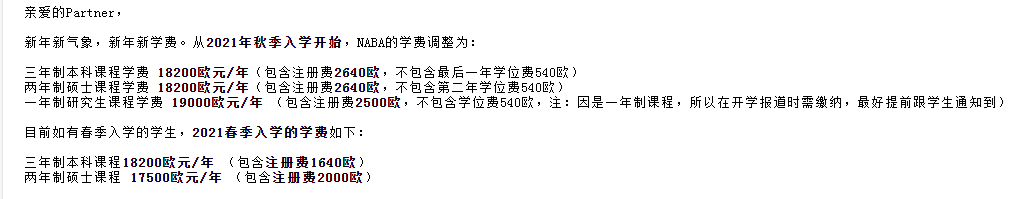 涨价了,这关系到所有今年出国以及想要去NABA留学的学生,要知道一下哈。