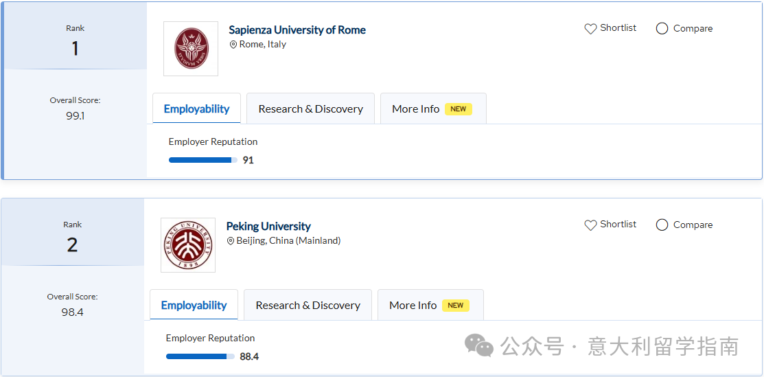 从2021年开始,罗马一大的古典学和古代史专业持续蝉联QS学科排名世界第一,一度超过牛津、剑桥和北大!